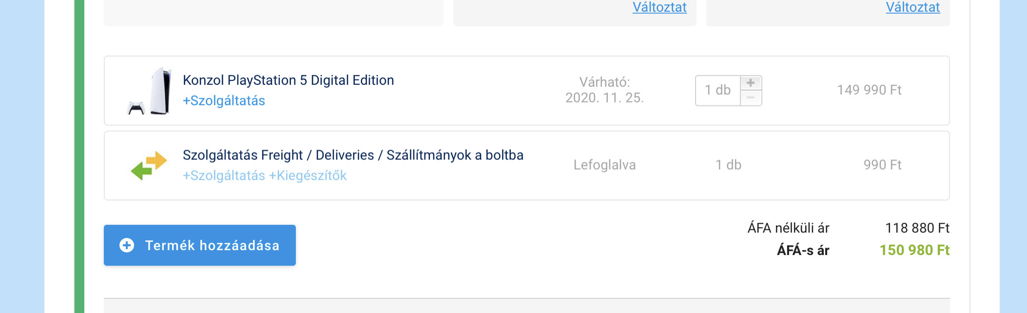 Ma mikor megrendeltem a PS5-t Alzarol akkor nem volt ott hogy varhato beerkezes 2021 feb.