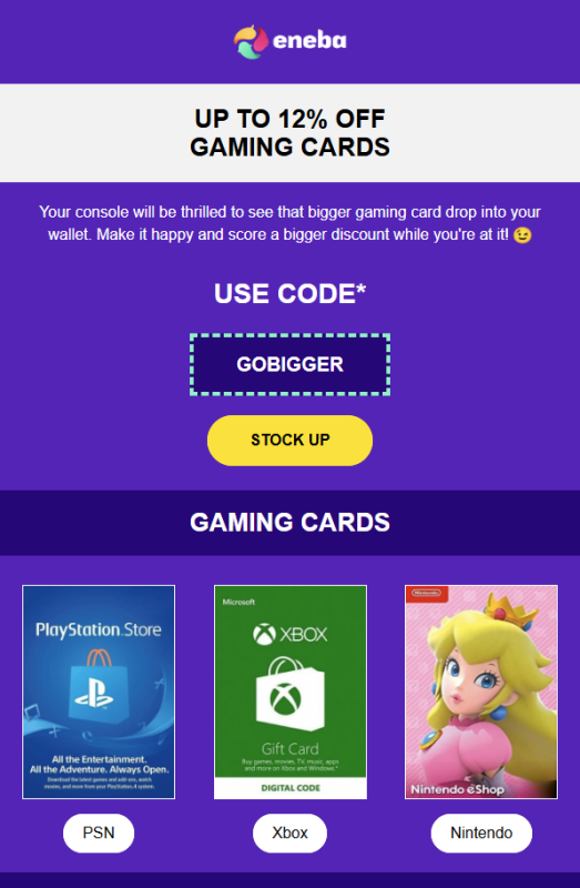 Eneba 12%-on kuponkód az első 1000 felhasználónak előfizetésre:
