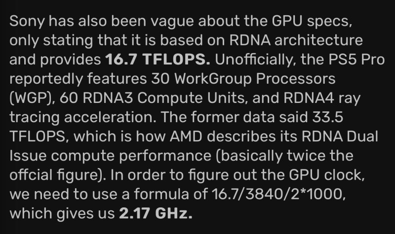 "Unofficially, the PS5 Pro reportedly features 30 WorkGroup Processors (WGP), 60 RDNA3 Compute Units, and RDNA4 ray tracing acceleration."