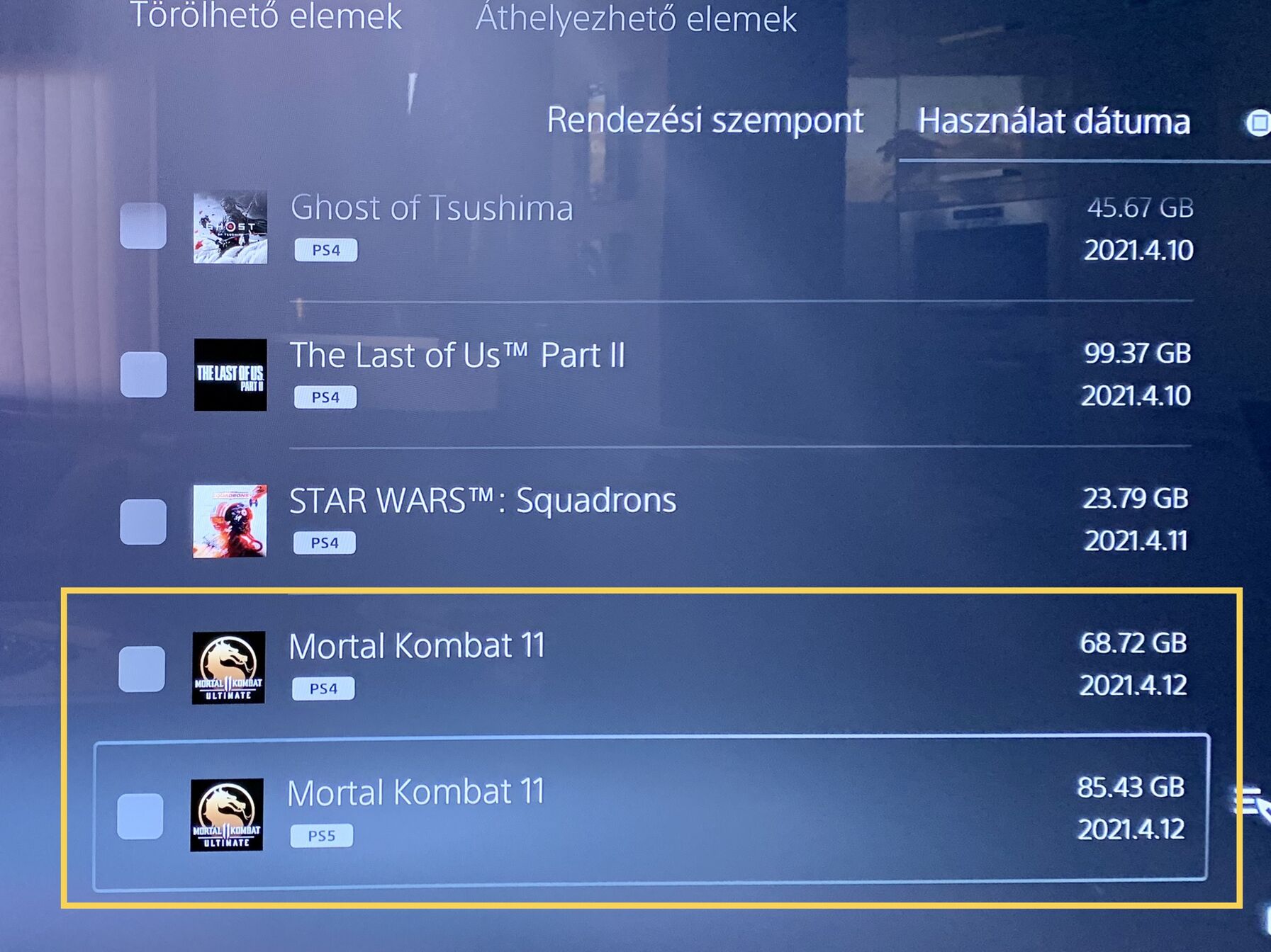 Most a MK11-nel latom, hogy betettem a lemezt feltelepiteni, majd miutan vegzett, hogy kulon, manualisan kellett kivalasztanom es elfogadnom a “Free PS5” upgradet a jatek neve melletti kis ikonon. Miutan ranyomtam es elkezdte letolteni, most latom, hogy ez az “Upgrade” nem a jatek fajljait irja felul, hanem letre hoz egy uj PS5 verziot a jatekbol.