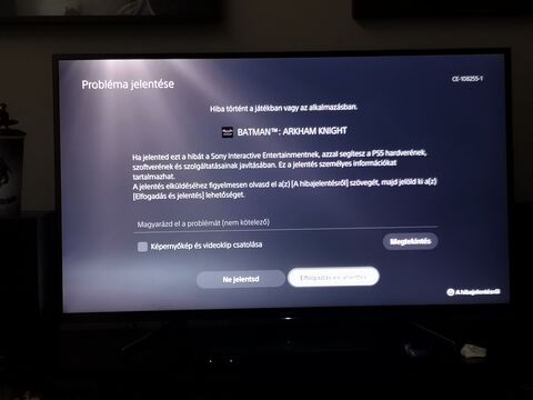 Kezdem felhúzni magam. 1 hete megjött a PS5, és az első komolyabb játék, amivel elkezdtem játszani az a Batman Arkham Knight. Eleinte nem volt különösebb gond, aztán egyszer csak kidobott hibaüzenettel. Meglepődtem, de nem foglalkoztam vele. Aztán az elmúlt három napban ugyanez megtörtént naponta többször is. Ma végleg betelt a pohár. Bekapcsoltam a gépet, játszottam 10 percet, és ekkor dobott ki. Eddig ilyen hamar nem csinálta. Tudtok erre mondani valmait?