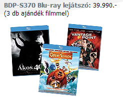 Azok figyelmébe, akik most akarnak beugrani a BD világába: a Sony Center-ekben hétfőtől elérhető lesz az új BDP-S370 lejátszó 39990-ért 3db ajándék filmmel.