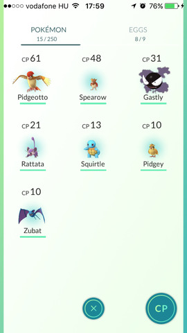 Érdekes, hogy azonos fajta pokémonok között mekkora hatalmas eltérés van erőben néha. pl Rattataból fogtam cp 10 és cp 54 -est is, vagy Zubatból és Pidgeyből is találtam cp 64 példányt is.