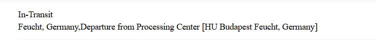 A csomag elhagyta a feldolgozó központot HU Budapest Feucht, NémetországFeucht, Germany