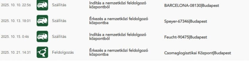Budapest - Sashalom 1 posta|Budapest"Illetve sikeresen kézbesítve tegnap 10:24-kor.