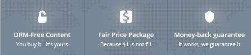 Minden elérhető cím, legyen az film vagy játék, DRM-mentes: nincs másolásvédelem, online ellenőrzés, se egyéb idegesítő dolgok - megvesszük, miénk. Megvett és letöltött címeinket elérhetjük internetkapcsolat nélkül is, mint a régi szép időkben, sőt, ha kedvünk tartja, készíthetünk a telepítő fájlokról biztonsági mentést is, hogy akkor is hozzáférjünk a játékhoz, ha kitörne a harmadik világháború és atombunkerekben kell töltenünk az elkövetkező száz évet.
