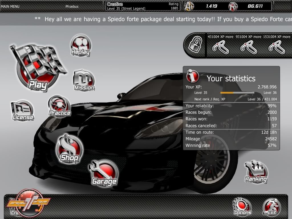 És simán lehet ekkora szintű ennyi versennyel. Ha már használhatod a csajt(lvl26) és poppert is teszel a szerver bonusz mellé akkor 1 nap alatt 4 milla XPt (10 verseny elég) összeszedhetsz, ez olyan lvl 36os szintig elegendő mennyiség(0-ról).A gridghost-os replayt ajánlom mindenki figyelmébe.
