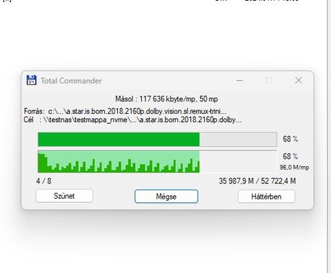 Látszik, hogy a másolás elején 1Gbyte/s megvan, utána 800M-90M között ugrál a másolási sebesség.