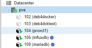 LXC és LXC között megy a névfeloldás! Tehát ha belépek pl. a 104-es LXC-be SSH-n, akkor ping influxdb és ping mariadb vidáman adja a response-t a helyes, feloldott IP-ről.