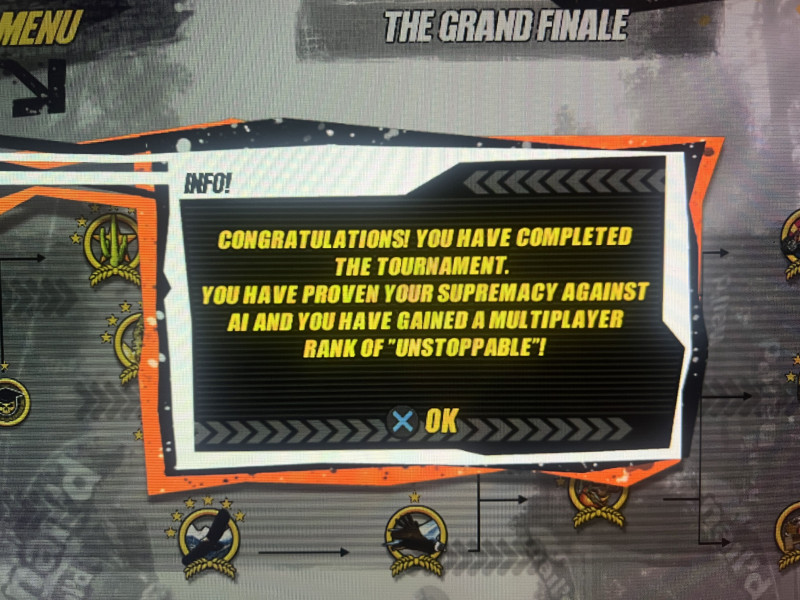 Játék felétől kb monoton az egész, meg javarészt csak akkor erőlteti azt a pár játékmódot ami van (az elején csak rendes versenyek vannak). Van hogy egyszerre 3-4-5 versenyt kell letolnod, ami lehet csak simán 1 körös vagy pedig 3. Az hogy mikor töröd össze magadat teljesen lutri, van olyan hogy tényleg semmi olyanra nem érkezel és már K.O is vagy.
