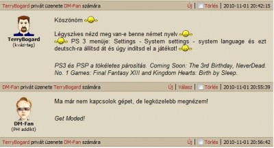 Tegnap valami volt a gépemmel de nem tudom mi? Bekapcsoltam Ninja Gaideneztem, azt utána beraktam a Naruto 2-öt, mondta hogy frissítsünk 3.15-ről 3.21-re, minden rendben ment és amikor már kész volt vele teljesen bekapcsoltam a joy-t nyomtam egy x-et beolvasta a lemezt fekete kép majd fél másodpercre sistergés (mint amikor a TV-n az egyik csatornán nincs adó) aztán hangyás kép (mint a tv-n nincs adás) PS gomb nyomásra sem történt semmi, monitor átkapcs PS3-ról PC-re és vissza és lán van kép (a menüt látom amikor a PS gombot megnyomom) és megy a játék, megprobáltam még 7-szer a fél másodperces sistergés még ott van de utána minden jó (csak ennél a játéknál).