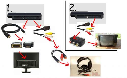 Ha meg egyik sem, tökéletes opció a HDMI>DVI konverter és a komponens kábelről RCA átalakítóval jackre bármi más.