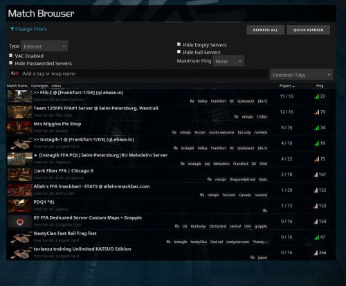Evil 2015-ös cfg-je nagyon jó ilyen szempontból. Nem tudom a "motorháztető alatt" mit variált benne, de tökéletesen megy (pontosabban ment, míg meg nem halt az alaplapom) 250 FPS-el ugyanazon a konfigon, amin a többi pártucat kipróbált "pro" cfg /+sajátok maximum összevissza ugráló 210~230-ig jutottak, stabilan meg leginkább 125 FPS-t produkáltak. Amúgy tökéletesen "fapad" lebutított (és fekete célkeresztel/nagyon világos, szinte vakító) grafikával. Csak ajánlani tudom. Főleg, hogy ez már a steamonly béta verzióhoz készült, amivel a legutóbbi quakecon-on nyomták a srácok. A régi cfg-k nem igazán faszák az "új" steamonly QL-el úgy vettem észre.. ez viszont szépen muzsikál
