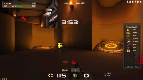 A spirált vissza tudom tenni (igazából már visszament) a "nem hozzáférhetőt" nem teljesen értem, de ha az accos dologra, azt én variáltam meg úgy, hogy mutassa elöl a tiedet, hátul az ellenfélét. Viszont mindigis bugos volt, szóval hol 0-át jelez, hol összekapja magát és még azt is hozzászámolja, amit az előzőleg leölt ellenfélnél kaptál (leginkább akkor tűnik fel ez, amikor nyitva van az a kis /+acc ablak, amiről képet raktam ki) Az itemek (egy része) alapjáraton kicsit más, mint a Q3-ban, vagy a QL-ben. Készítek egy sample-t és meglátod.