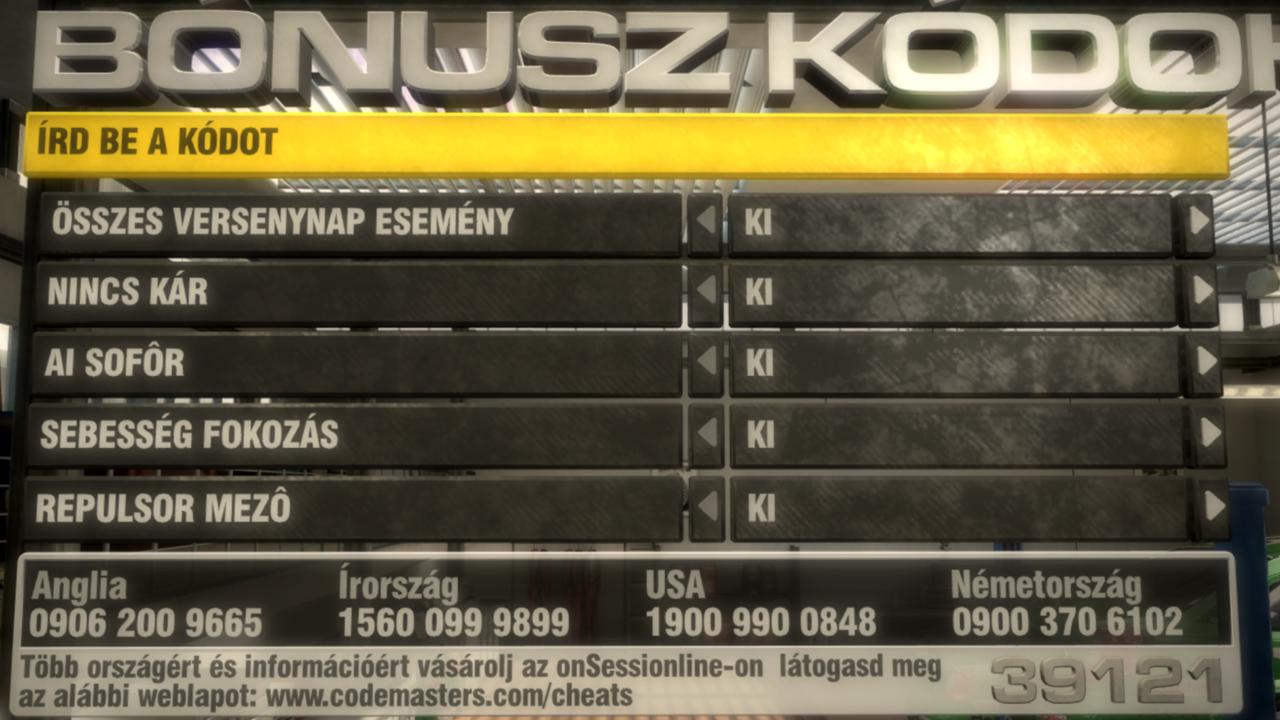 Még 1* mondom! Bárki megveheti a Codemasterstől 1. 200 HUF-ért, de csak és kizárólag karrierben működik. Pont! Boost gomb használata, sérthetetlenség, all ebay car, stb, de ezt ti is megtaláljátok a menübe: