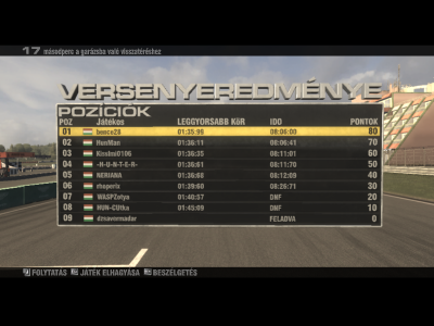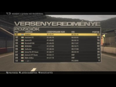 SZIA AAAKOS ezt neked irom!! gyere ma is én nem haragszok ez van mármint a lagra irom ez csak játték tét nélkül ugy hogy gyerre légyszives legaláb nyomunk 1 jó futamot fej fej mellet üdv bence