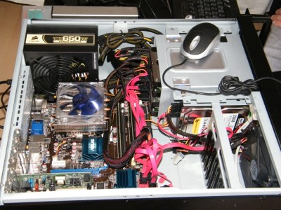 Részben hozott anyagból dolgoztam (adott volt egy gép egy winchesterrel, aktív szellőztetés nélkül), és a biztonság okán kellett fejleszteni. Dobtam belőle a noname tápot, helyére Corsair VX450, lett bele két vadi új winchester, két új SATA kábel (csatos, de mondjuk piros!