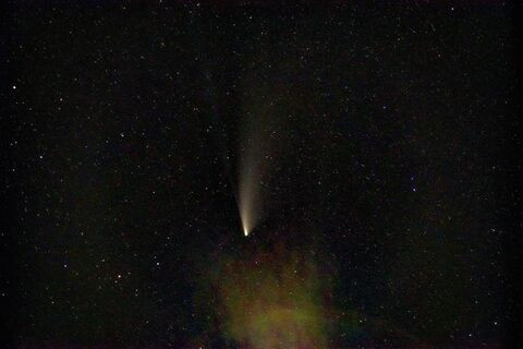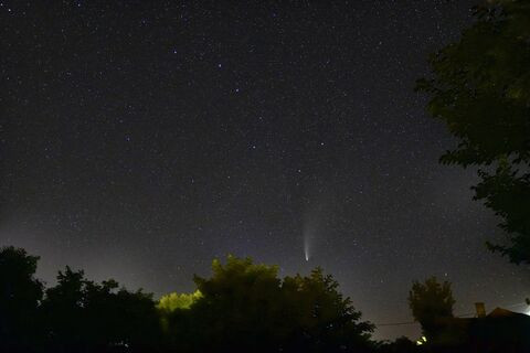 Voltam kint fél órája az utcában. Halványan ugyan, de szabad szemmel is látható az észak-nyugati égen alul. Kár, hogy a fák, házak, erős utcai fények miatt lehetetlen a fotózása. Megpróbáltam, de rosszabbak az esti képek mint a hajnaliak.
