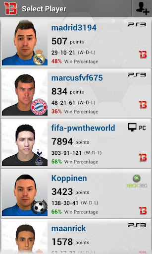 A FIFA 13 Profiles alkalmazással nem lehet mérkőzéseket játszani, csak a játékosok profiljait / statisztikáit követni. Eme tevékenységet a "rendes" FIFA 13 játékkal lehet végezni (ami pénzbe is kerül majd), mely tudtommal még nincs a Play store-ban (csak a 2012-es FIFA). Erre gondolt a kolléga.