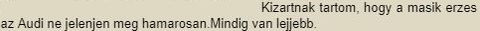 Kihagynam. Tulhajpolt Harombetus betgseg. Kizartnak tartom, hogy a masik erzes az Audi ne jelenjen meg hamarosan.Mindig van lejjebb.