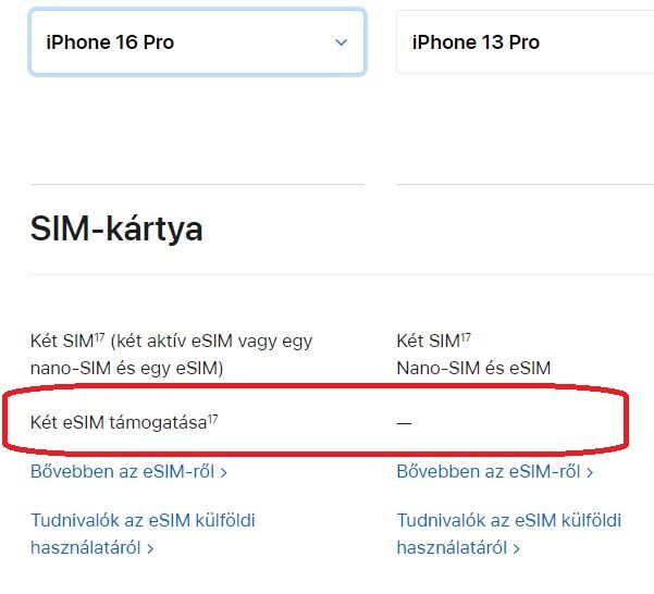 Tudja a kettős eSIM módot, pont a 13-as családdal vezette be az Apple. Alap 13 esetén is használtam már gond nélkül. A magyar leírás hibás.
