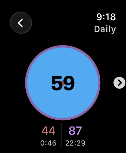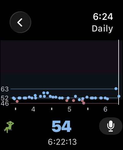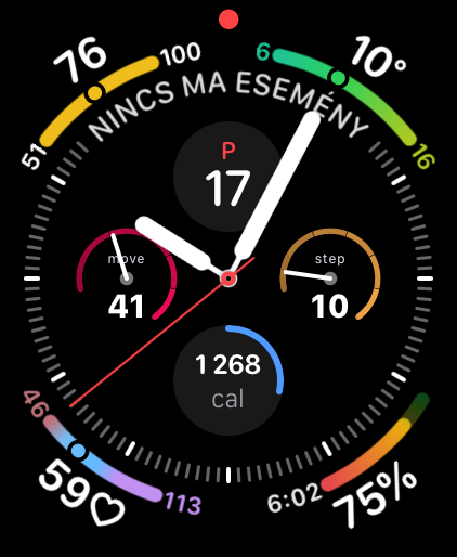 Ettől függetlenül az adatok megvannak az appban, tehát mondjuk a számlap komplikációkban látszanak az értékek - bal alsó sarok.