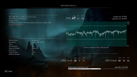 Most beállítva 84fps az átlag(min. 1% 36fps, 0,1% 23fps, észre sem veszem játék közbe őket). És a kinézetből nem sokat veszítettem.
