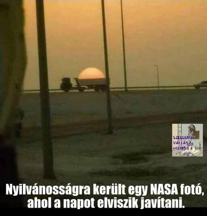 A nap az égen van. Oda nem lehet "eljutni". Ezt a képet biztos a gyíkemberek csinálták. (+ a nap kör alakú, nem lehet lemenetel közben 'elkapni', hogy pont ne legyen teljesen kör, és vinni lehessen. Illetve gondolom már megolvasztotta volna a teherautót.)