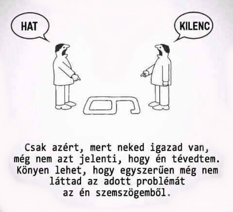 Most vonatkoztassunk el a (vélt) tudásunktól és higgadtan gondoljunk bele, hogy bármennyit is tudunk, az nem biztos hogy a teljes igazság....és próbáljuk meg tolerálni vagy elfogadni, hogy más emberek ugyanazokat a valós infiormációkat máshogy összesítik (akár hibásan) az agyukban.Minden ember más és mást lát és a tényeket sem fogja elfogadni úgy ahogy a másik ember.