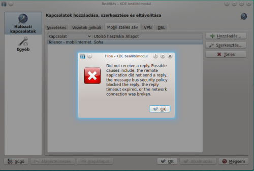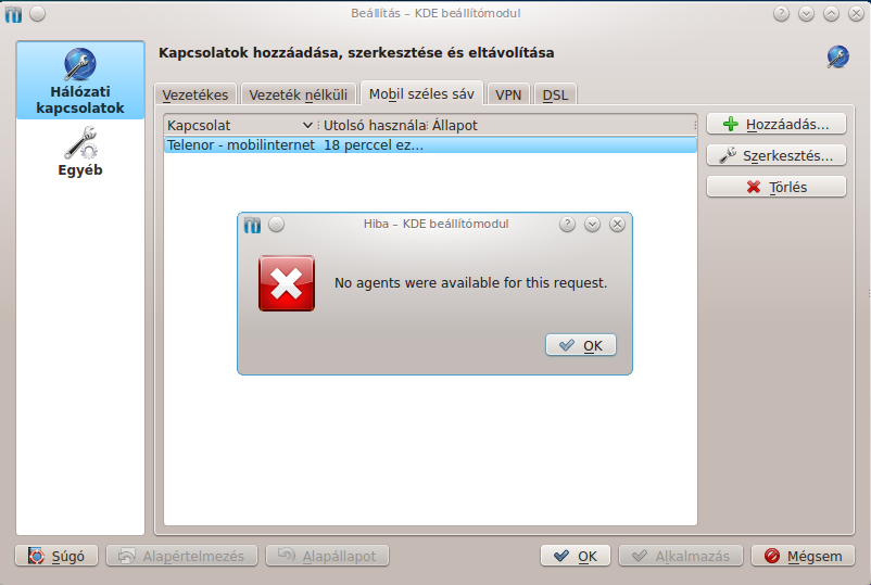 Szerk.: Most ép frissít, ha végez, indítom a ModemManager -t nem kapcsolom ki a Kde wallet nevü valamit, meglátjuk lesz e hibaüzenet.