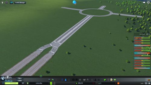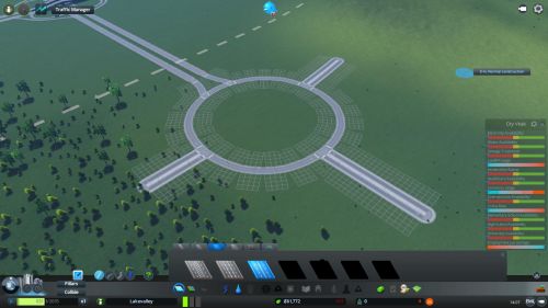 A közlekedési szimuláció tényleg egész jó, de azért a gép - alapesetben - csal. Ha valahol tényleg beáll nagyon a forgalom, akkor despawnolnak az autók. Ezt persze modokkal ki lehet kapcsolni és bőven vannak olyan modok is, amelyek további realitásokat adnak az egészhez, mondjuk hogy a belső sávban mindig gyorsabb a forgalom, meg mondjuk hogy hány "szegmenssel" a kereszteződés előtt kezdenek el sávot váltani, ha le akarnak kanyarodni, ilyesmi. Közlekedésmérnököknek egyébként a CiM2 talán egy fokkal jobb.