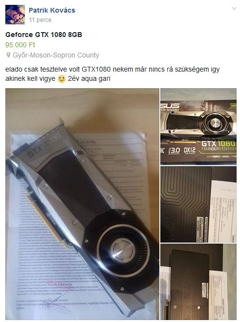 Akkor én nagyon szerencsésnek érezhetem magam, hogy 270ezret előre elküldtek az 1080Ti-ért amit hirdettem.