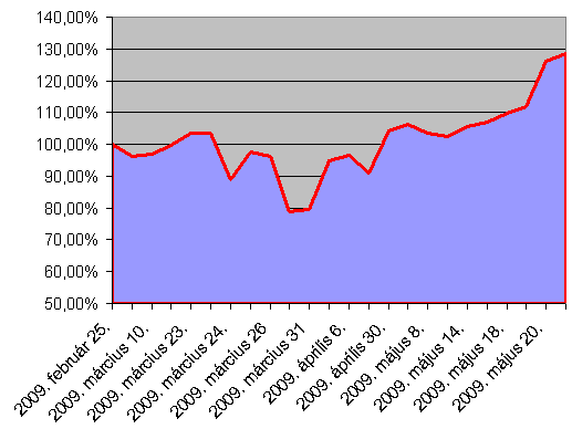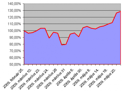 OTP 2009.04.28 - 2 510,0000 eladás: 2009.05.04 - 2 930,0000Ezek voltak a pozitív lépések, szintén majdnem teljes alappal, plusz volt pár kisebb rossz lépés, ami lefele húzott
