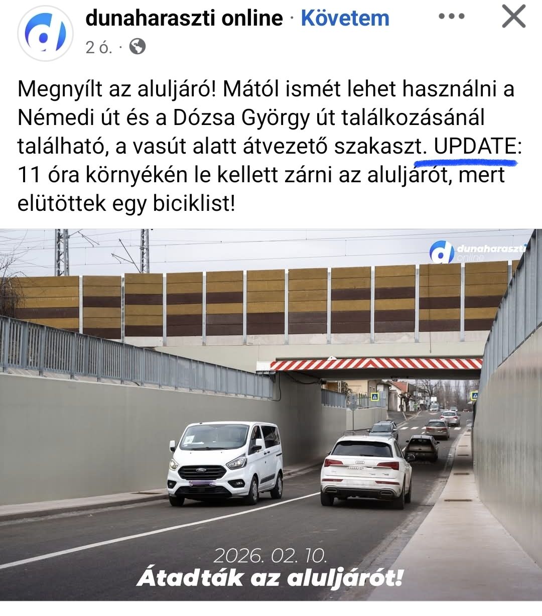 Magyar abszurd: lakossági kordonbontás után átadják a felújított autós aluljárót