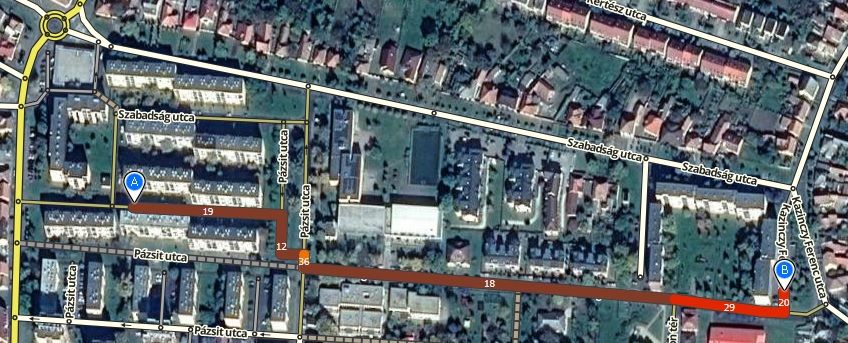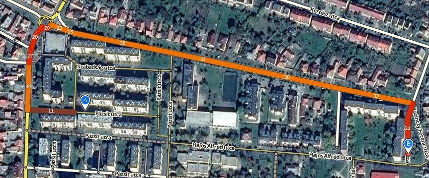 Amikor 1-1 szegmens van egyirányba lezárva azt könnyűú észrevenni, mert a kis behajtani tilos tábla ott van a szegmens elején, amelyik irányból a lezárás érvényes. Ha megnézed az Ady-t a kliensben, a körforgalomnál nincs ilyen tábla, onnan be lehet hajtani. -