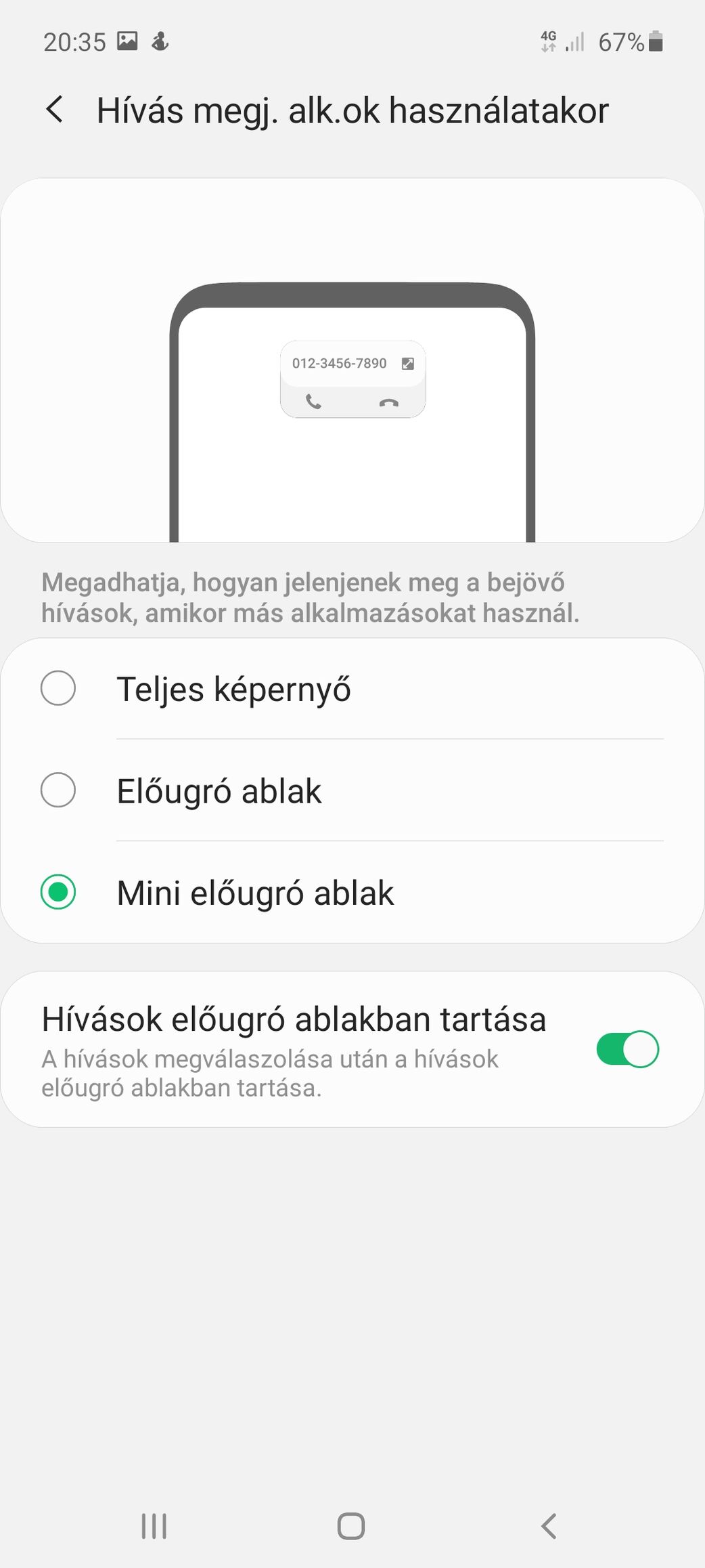 A telefon appnál be van neked állítva a hívás megjelenése alkalmazások használatakor részben, hogy mini előugró ablakban jelenjen meg? -