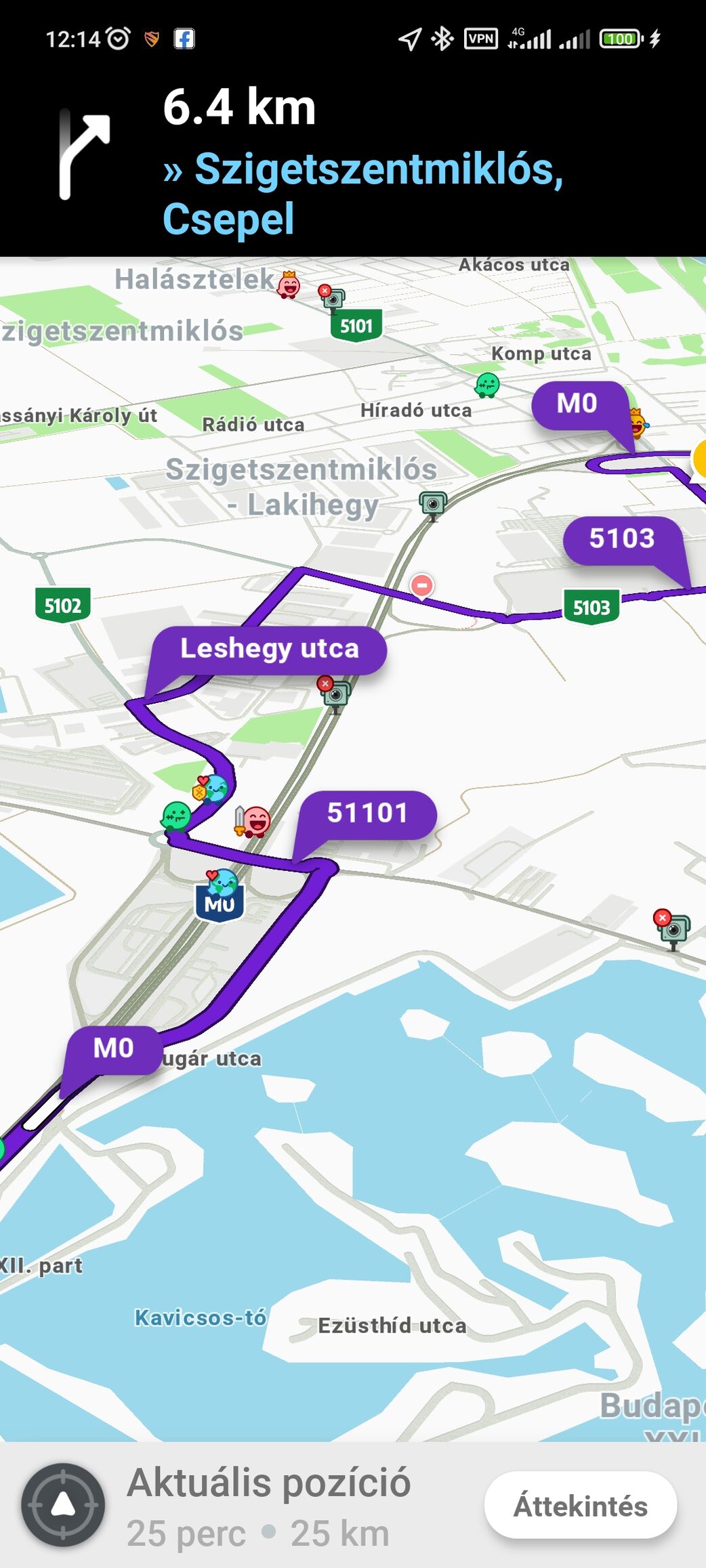 viszont a waze meg ahogy lejjebb is irtam, hogy sokszor érthetetlen urvonalatra visz ahogy másvalaki is posztolta a képen.
