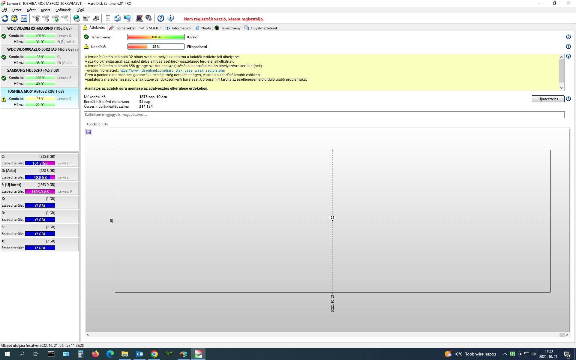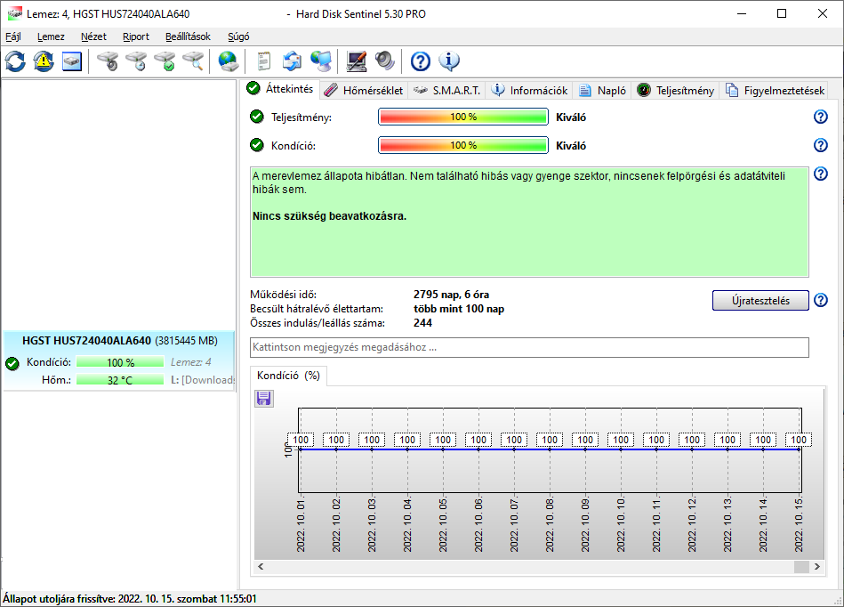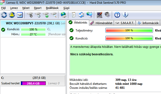 Na ez az, amit egy merevlemeznél nem szeretek látni... Ha a kondíció csökken.