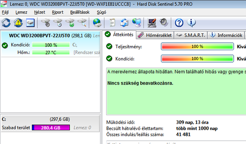 - Power cycle count ?Csak mert nagyon nem mindegy! Load cycle count az csak fejparkolás, a lemez attól még forog tovább. Ez az érték felmehet 600 ezerig simán, és még fölötte se szükségszerűen hal meg a mechanika (ettől mondjuk még abnormálisan nagy terhelést jelent 600 ezer fej ki-beparkolás, főleg ha ezt sikerül 1-2 év alatt elérni).