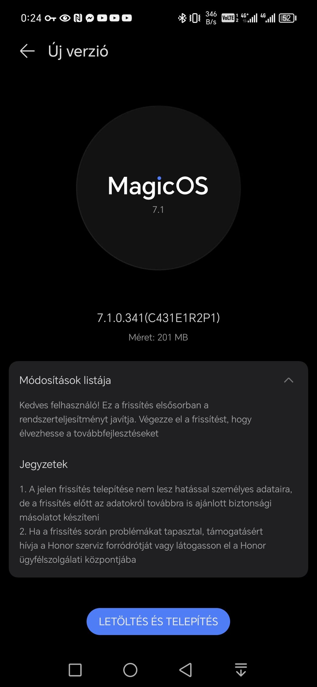 Ahhoz képest, hogy a Honor magyarország váltig állította, hogy erre a telóra már nem fog jönni, én meg hiába mondtam, hogy de fog....