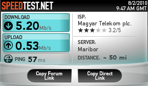 T-Home DSL alap 5M/500k kis faluban így muzsikál: