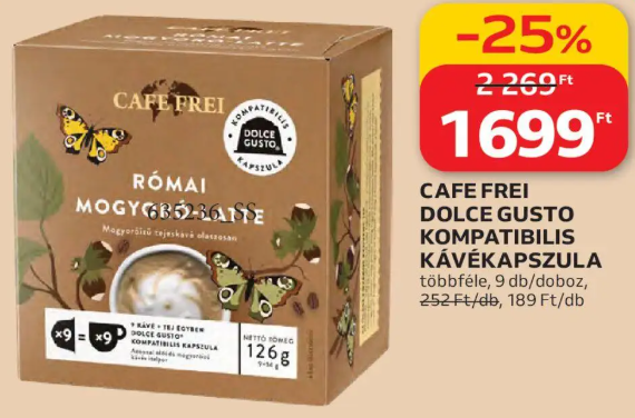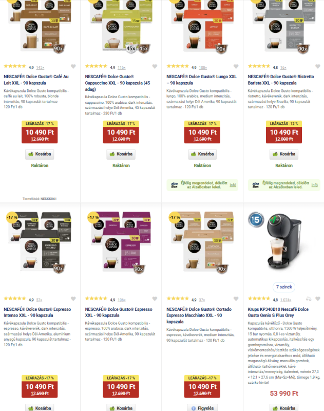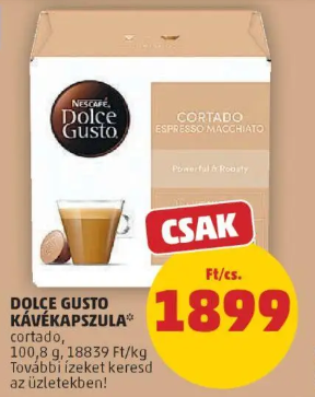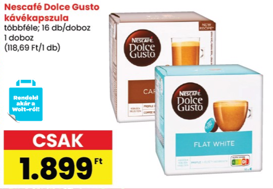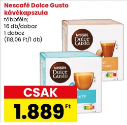 (1800Ft/16darabos doboz áron se a Lidl-ben se a Dolce Gusto oldalon nem volt