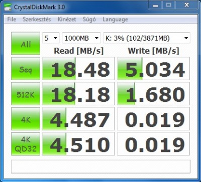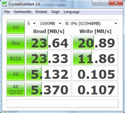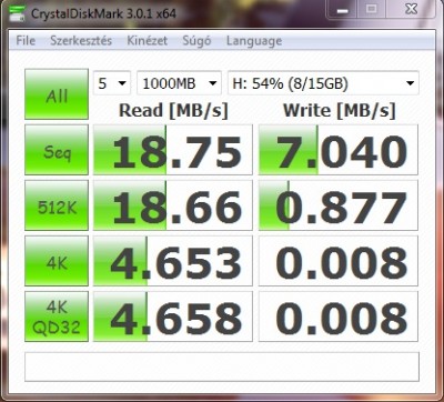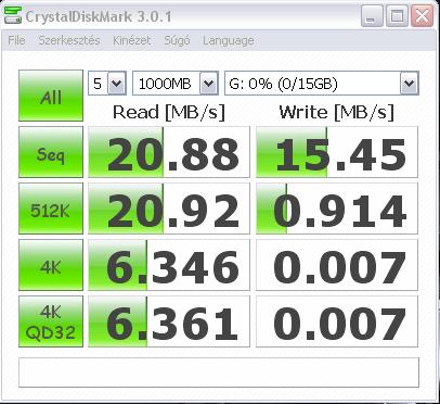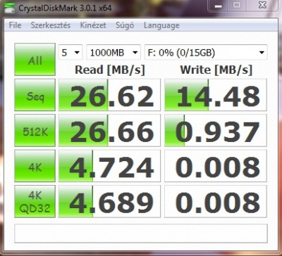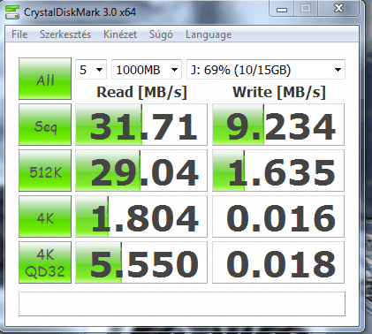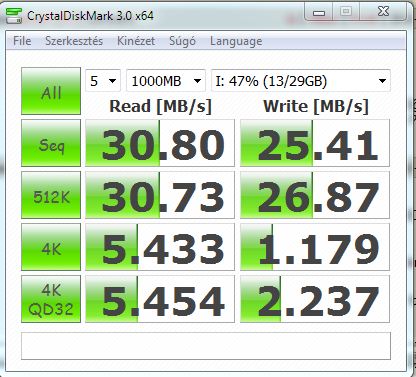 30MB/s olvasás, és ~16MB/s írás, egész jó (de csak a többihez képest).