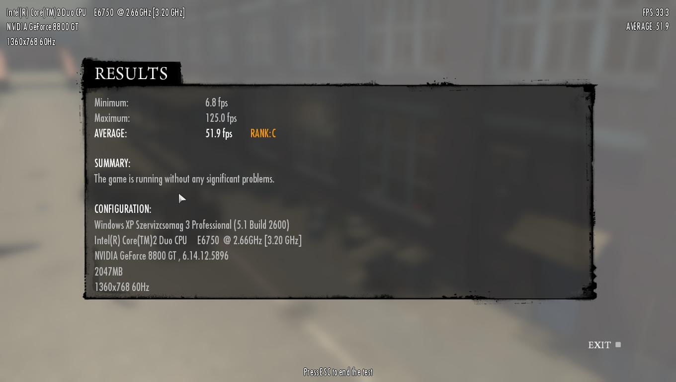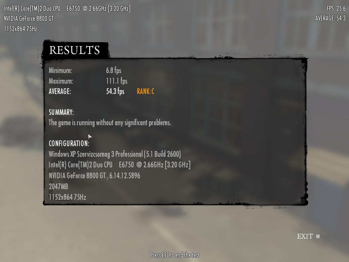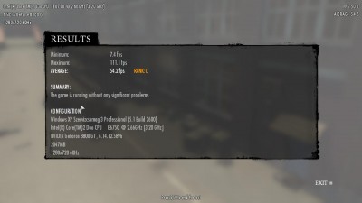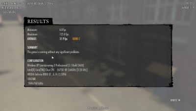 Itt látszik, hogy vsync gondjai vannak a proginak, nem is kicsi (videó végén 26% feletti tearing), és az is látszik, hogy a framerate visszaesik 15,5-ig, az átlag meg 26, amiből nyilvánvaló, hogy nem csak néha néha esik vissza 30 alá. Már a kezdő szobában is visszaesik 26-ig, zárt térben, a lövöldözős résznél a második emeleten (videóban 4:50-től) meg hosszú másodperceken át 19-21 frammel fut, és az egész lövöldözés alatt soha nem éri el a 30-at.