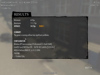 Egy ilyet tudtam készíteni: 1152*864 felbontás, 54,3 fps lett az átlag.