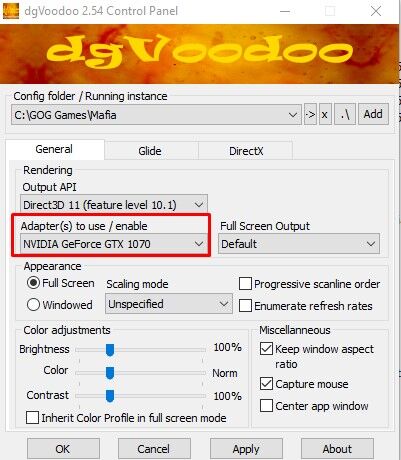 Nekem is Display-t ír ki, gondolom, mert elsődlegesen a dgVoodoo intézi az ügyet, így a game setup már csak az outputot látja. Attól biztos nem rossz.