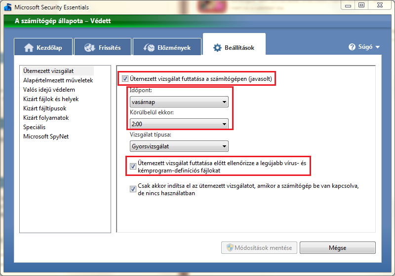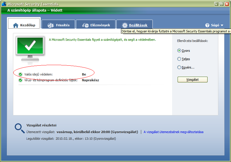 Műveletközpontban azt írja a víruskeresés és kémprogramok védelme bekapcsolva és napra kész.