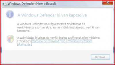 Defender kikapcsolva (ha megpróbálom bekapcsolni, után rögtön ki is kapcsolódik) -