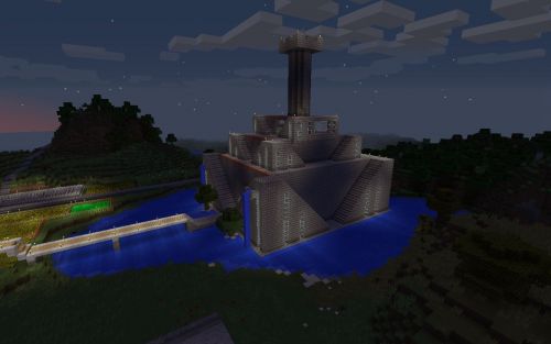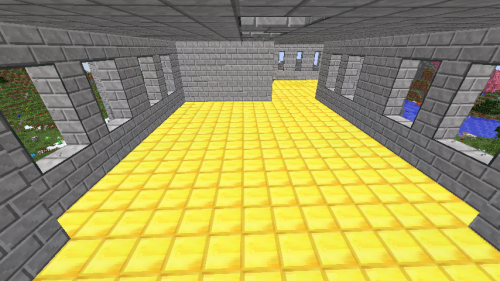Az előtte kanyargó folyó miatt választottam a helyet. Persze nem vanilla. A ház padlója pedig nem aranyból van.(bár amennyi van az 1.7.10-es DW packban,akár abból is lehetne), csak painthing machine-ban átszínezett stone slab.