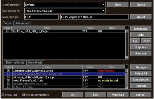 Nálam így néz ki egy működő Forge-olt Magic Launcher (igaz, 1.6.2-es MC-hez):Az "Environment" legördülő menüben is a Forge-olt MC jar-t kellene kiválasztani, illetve arra is figyelni kell, hogy az "Advanced" fülön is kell valami paraméterezést állítani, hogy az Optifine működni tudjon a Forge-al.
